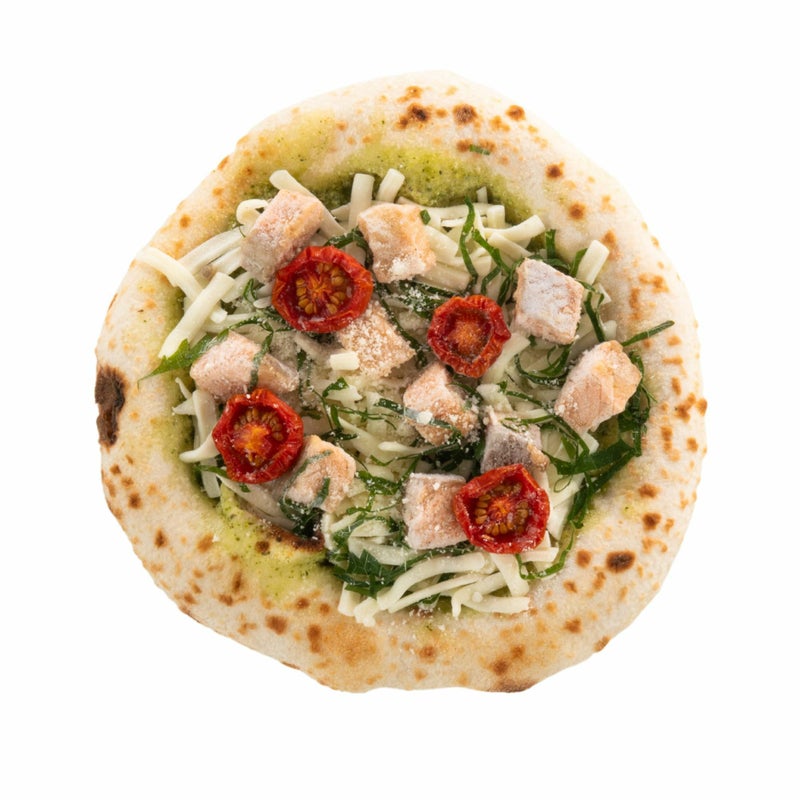 - 小麦粉(国内製造)、ビワマス、ナチュラルチーズ、ミニトマト、バジルペースト(バジル、なたね油、パルメザンチーズ、その他)、酒粕、焼物用調味料(植物油、食塩、青しそ末、その他)、食塩、大葉、砂糖、イースト/調味料(アミノ酸)、酸味料、香料、増粘剤(キサンタン)、香辛料抽出物、(一部に小麦・卵・乳成分・さば・大豆を含む)
